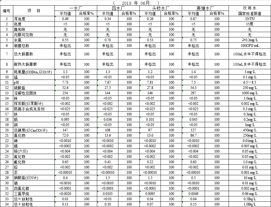 自來水水質(zhì)報告(2019年6月份)