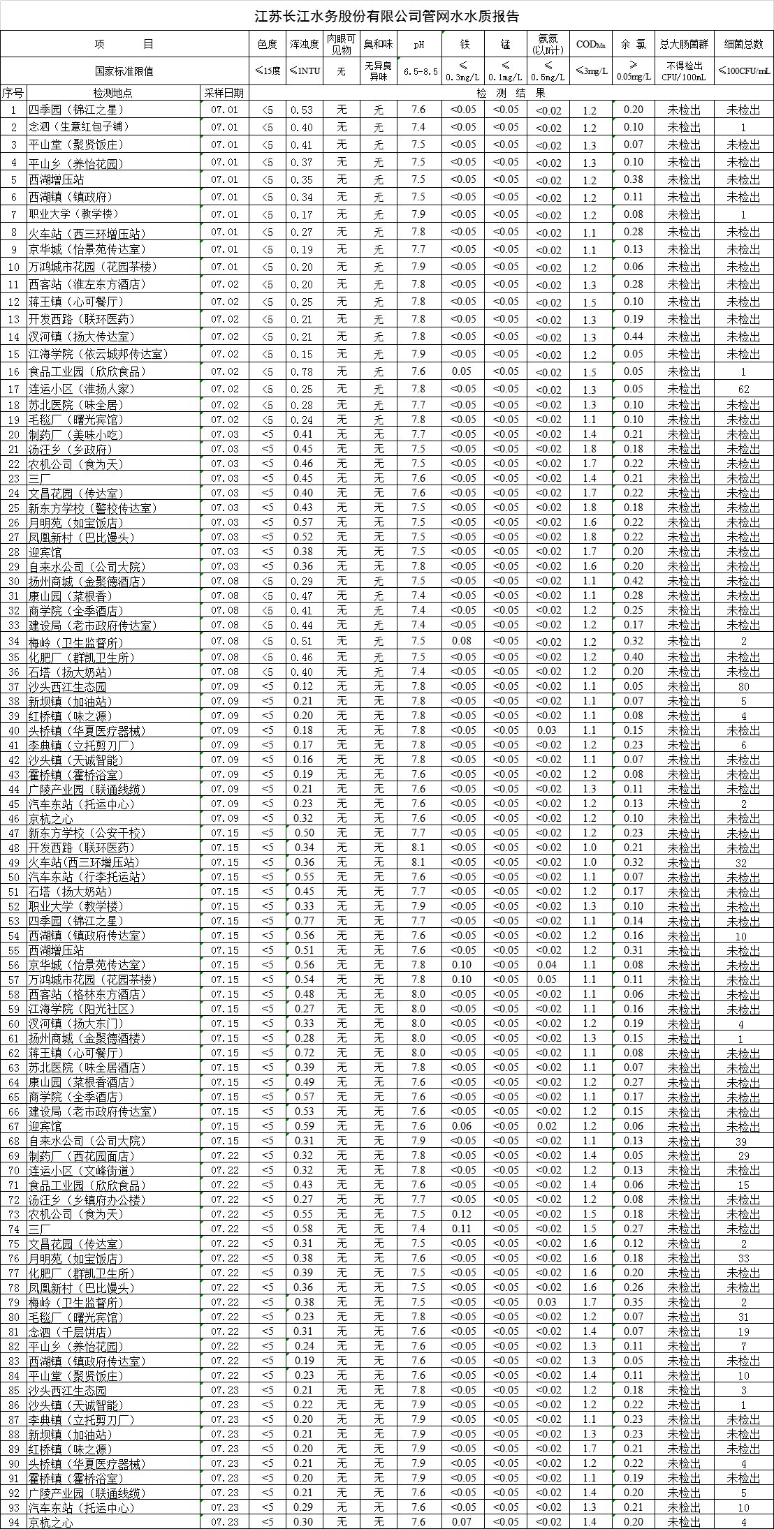 江蘇長江水務(wù)股份有限公司管網(wǎng)水水質(zhì)報(bào)告(2019年7月)