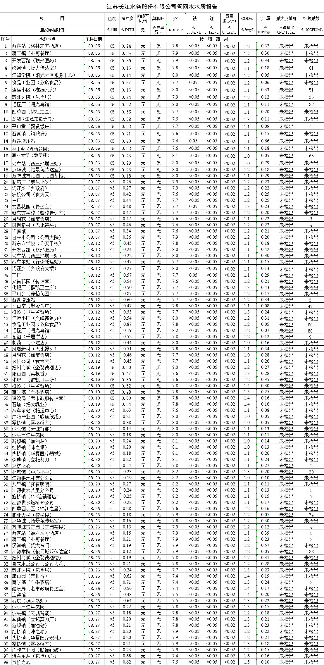江蘇長(zhǎng)江水務(wù)股份有限公司管網(wǎng)水水質(zhì)報(bào)告(2019年8月)