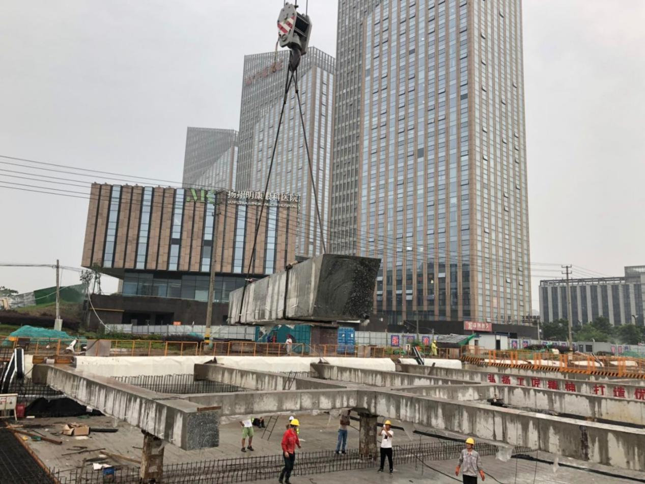 為確保首段砼支撐安全順利拆除,項(xiàng)目部積極做好各項(xiàng)準(zhǔn)備工作,細(xì)化施工方案、強(qiáng)化安全措施,并安排專人對(duì)每個(gè)施工環(huán)節(jié)進(jìn)行技術(shù)交底。此次拆除的砼支撐長(zhǎng)8米、高0.8米、寬0.8米、重13.3噸,采用了汽車吊預(yù)起吊、兩臺(tái)鏈鋸?fù)瑫r(shí)切割的拆除方式。