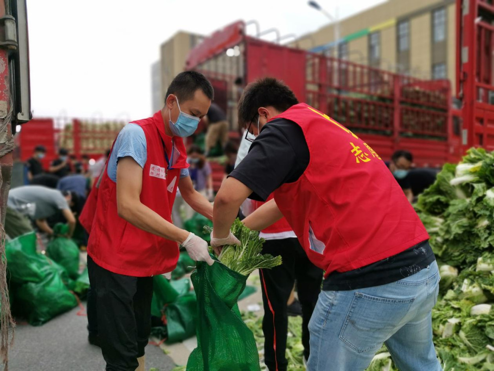 由于蔬菜數(shù)量龐大,為保障居民能夠及時(shí)拿到“愛心菜”,13:30,城控集團(tuán)又從各志愿服務(wù)小組緊急抽調(diào)50名志愿者奔赴萬噸冷鏈進(jìn)行現(xiàn)場(chǎng)支援。