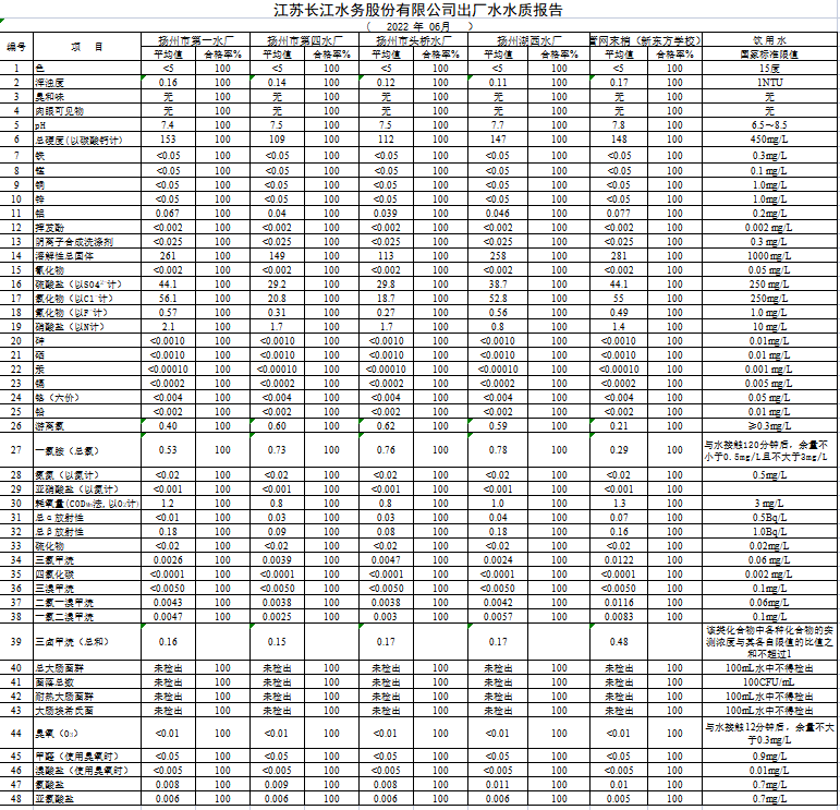 江蘇長江水務(wù)股份有限公司出廠水水質(zhì)報告 ( 2022 年 06月 )