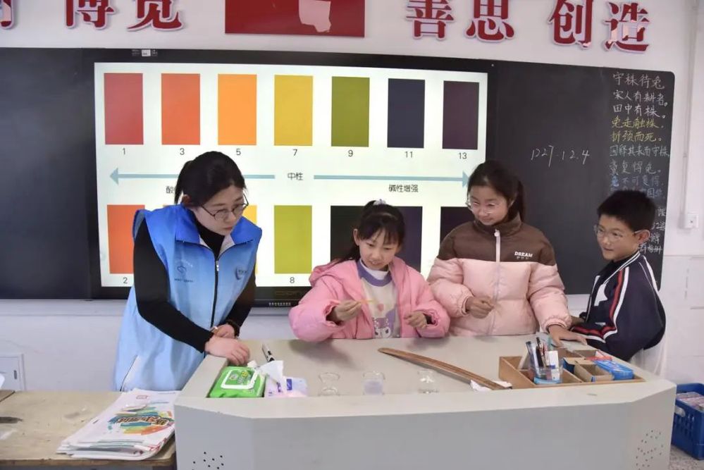 活動(dòng)現(xiàn)場(chǎng),志愿者通過“理論+實(shí)踐”雙線并行的方式,向?qū)W生們普及水資源知識(shí)。理論環(huán)節(jié)中,志愿者以通俗易懂的語言講解了水資源的稀缺性、日常節(jié)水技巧以及長(zhǎng)江流域水生態(tài)保護(hù)的重要性。實(shí)踐環(huán)節(jié)則設(shè)置“水的酸堿度”小實(shí)驗(yàn),學(xué)生們?cè)谥笇?dǎo)下動(dòng)手操作簡(jiǎn)易酸堿度檢測(cè)小實(shí)驗(yàn),觀察不同酸堿度下試紙的變化,讓同學(xué)們深刻理解健康飲水的重要性。