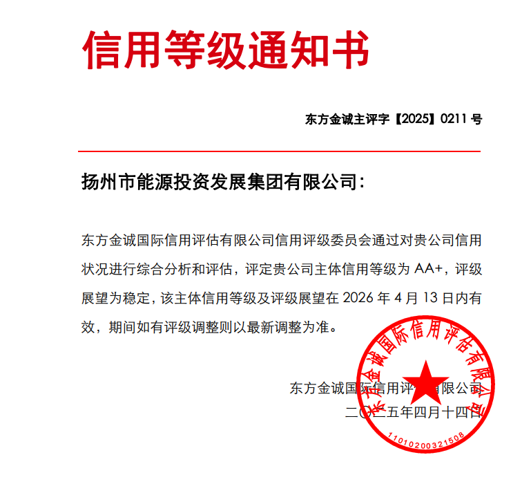 此次獲AA+主體信用評(píng)級(jí),充分體現(xiàn)了能源集團(tuán)優(yōu)異的資產(chǎn)質(zhì)量、穩(wěn)健的財(cái)務(wù)結(jié)構(gòu)和強(qiáng)勁的現(xiàn)金流管理能力。能源集團(tuán)將繼續(xù)以市場(chǎng)化為導(dǎo)向,做強(qiáng)做優(yōu)做大燃?xì)狻⒐?、新能源、“雙碳”核心業(yè)務(wù),為推動(dòng)揚(yáng)州市能源轉(zhuǎn)型和綠色發(fā)展貢獻(xiàn)更大力量。