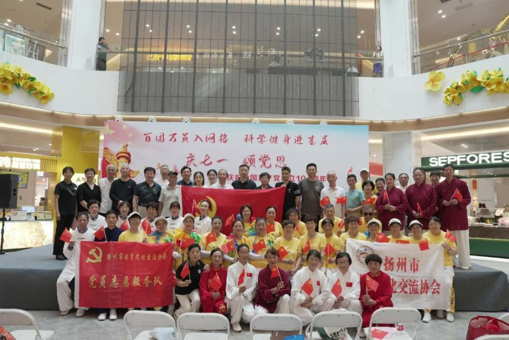 活動(dòng)現(xiàn)場(chǎng),社區(qū)健身隊(duì)通過活力四射的紅色主題廣場(chǎng)舞和剛?cè)峁矟?jì)的太極表演,展現(xiàn)了紅色情懷,豐富了全民健身活動(dòng)內(nèi)涵;“黨史+健身”主題互動(dòng)問答環(huán)節(jié)亮點(diǎn)頻出,通過百年黨史與科學(xué)健身知識(shí)的巧妙結(jié)合,讓參與者在趣味競(jìng)答中感悟紅色力量、收獲健康知識(shí)。隨著全體人員齊聲高唱《沒有共產(chǎn)黨就沒有新中國(guó)》,激昂的歌聲將活動(dòng)推向高潮。