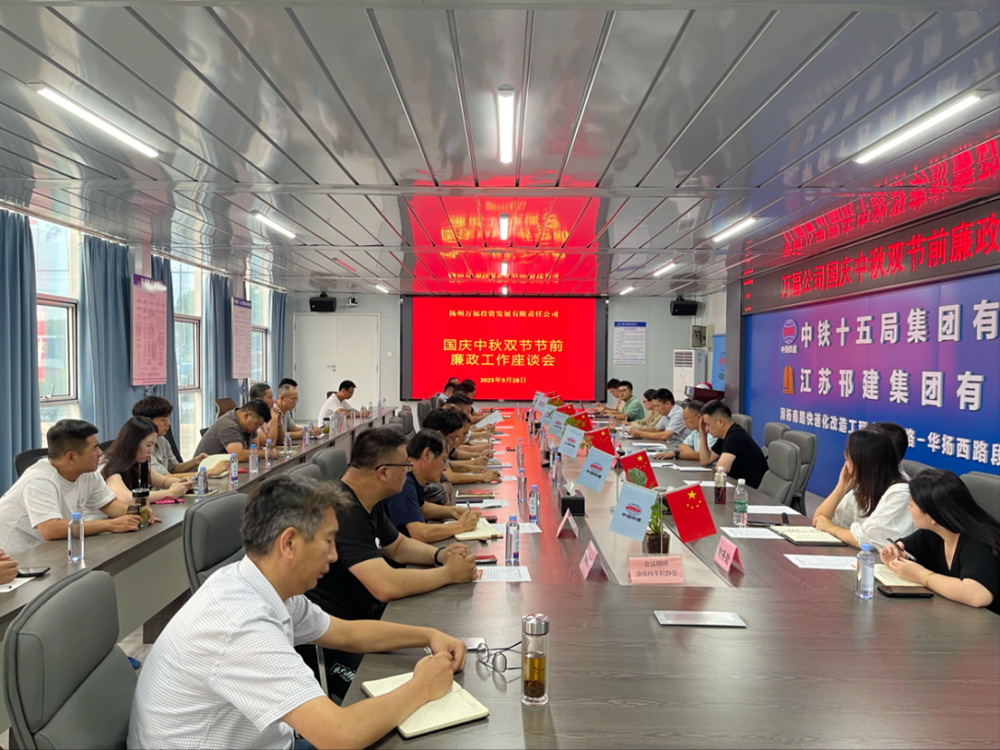 為深入貫徹中央八項(xiàng)規(guī)定精神,營(yíng)造風(fēng)清氣正的節(jié)日氛圍,嚴(yán)防“八小時(shí)外”和“節(jié)日病”,9月28日下午,萬福公司黨支部在潤(rùn)揚(yáng)路南延項(xiàng)目部開展節(jié)前廉政工作座談會(huì)。萬福公司領(lǐng)導(dǎo)班子成員、各部門負(fù)責(zé)人及現(xiàn)場(chǎng)工作人員;中鐵十五局、揚(yáng)建集團(tuán)、邗建集團(tuán)、太平洋西北建設(shè)集團(tuán)各項(xiàng)目書記、項(xiàng)目經(jīng)理和監(jiān)理單位工作人員參加會(huì)議。