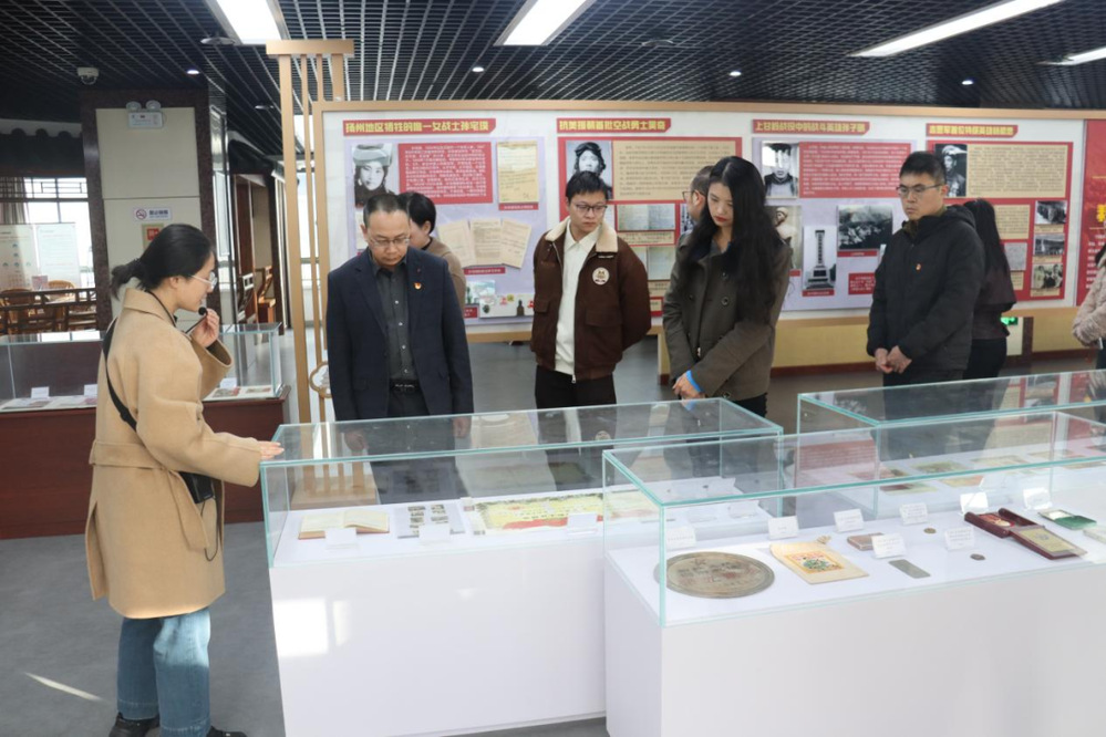 走進(jìn)主題展廳,“組織動(dòng)員”“眾志成城”“英勇作戰(zhàn)”“英雄贊歌”四個(gè)篇章依次鋪展,百余份歷史照片、文獻(xiàn)資料與珍貴實(shí)物,生動(dòng)再現(xiàn)了75年前志愿軍保家衛(wèi)國(guó)的壯闊歷程。黨員干部們駐足凝視、認(rèn)真聆聽,揚(yáng)州籍烈士的戰(zhàn)功名錄里,是故土兒女的熱血赤誠(chéng),志愿軍特級(jí)英雄楊根思“抱起炸藥包與敵同歸于盡”的壯舉,盡顯以身許國(guó)的決絕;空戰(zhàn)勇士吳奇犧牲前的最后一封家書,藏著對(duì)家國(guó)的牽掛與不舍;上甘嶺戰(zhàn)役中孫子明舍生忘死的沖鋒,刻著無畏向前的勇毅。泛黃的史料與鮮活的事跡,既生動(dòng)詮釋了“祖國(guó)和人民利益高于一切”的精神內(nèi)核,也讓大家深刻領(lǐng)會(huì)了志愿軍的愛國(guó)主義、革命英雄主義與國(guó)際主義精神。