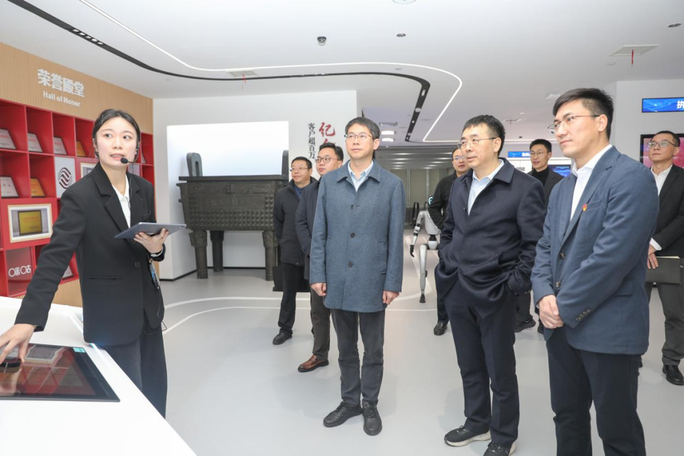 簽約儀式前,方璇智一行走進揚州移動“智韻揚州·5G+未來智慧展廳”,系統(tǒng)了解大數(shù)據(jù)、人工智能等前沿技術(shù)在智慧生活、智慧城市、智慧能源等領(lǐng)域的創(chuàng)新應(yīng)用成果,并現(xiàn)場體驗“靈犀曉伴”智能交互、無人機巡檢、XR大空間、全息投影等典型應(yīng)用場景。圍繞市城控集團城市建設(shè)、公用事業(yè)、能源產(chǎn)業(yè)等主要業(yè)務(wù)板塊,揚州移動針對性介紹了相應(yīng)的信息化解決方案,為集團數(shù)智化轉(zhuǎn)型提供重要參考。