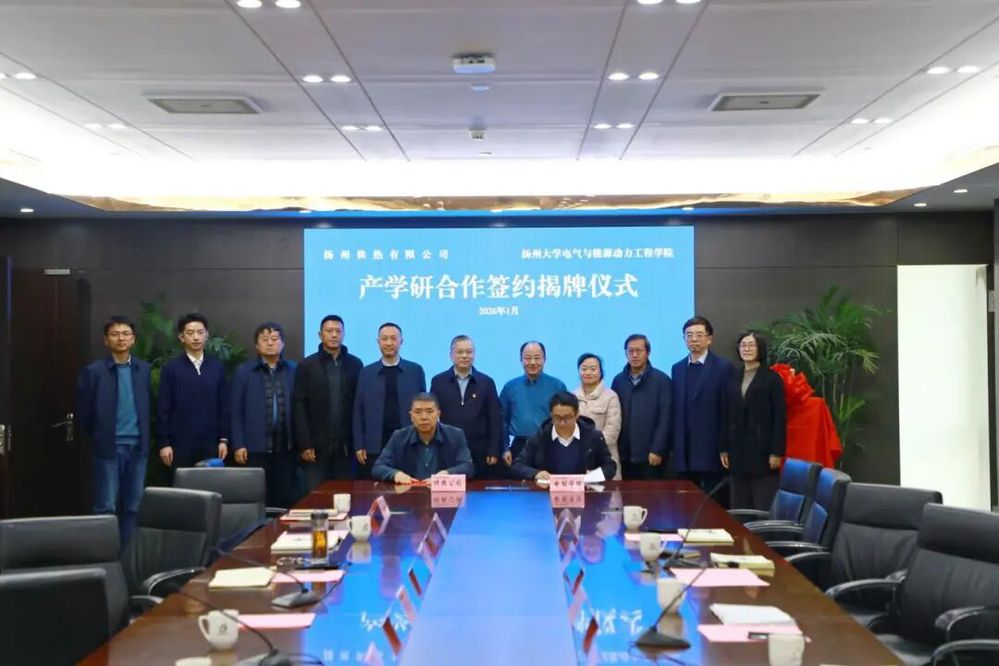 1月28日下午,供熱公司與揚(yáng)州大學(xué)電氣與能源動(dòng)力工程學(xué)院舉行產(chǎn)學(xué)研合作簽約揭牌儀式。揚(yáng)州大學(xué)電氣與能源動(dòng)力工程學(xué)院院長楊華、黨委副書記周敏、副院長李生權(quán),城控集團(tuán)副總經(jīng)理、能源集團(tuán)董事長孔德存,供熱公司主要負(fù)責(zé)人及相關(guān)人員出席儀式。