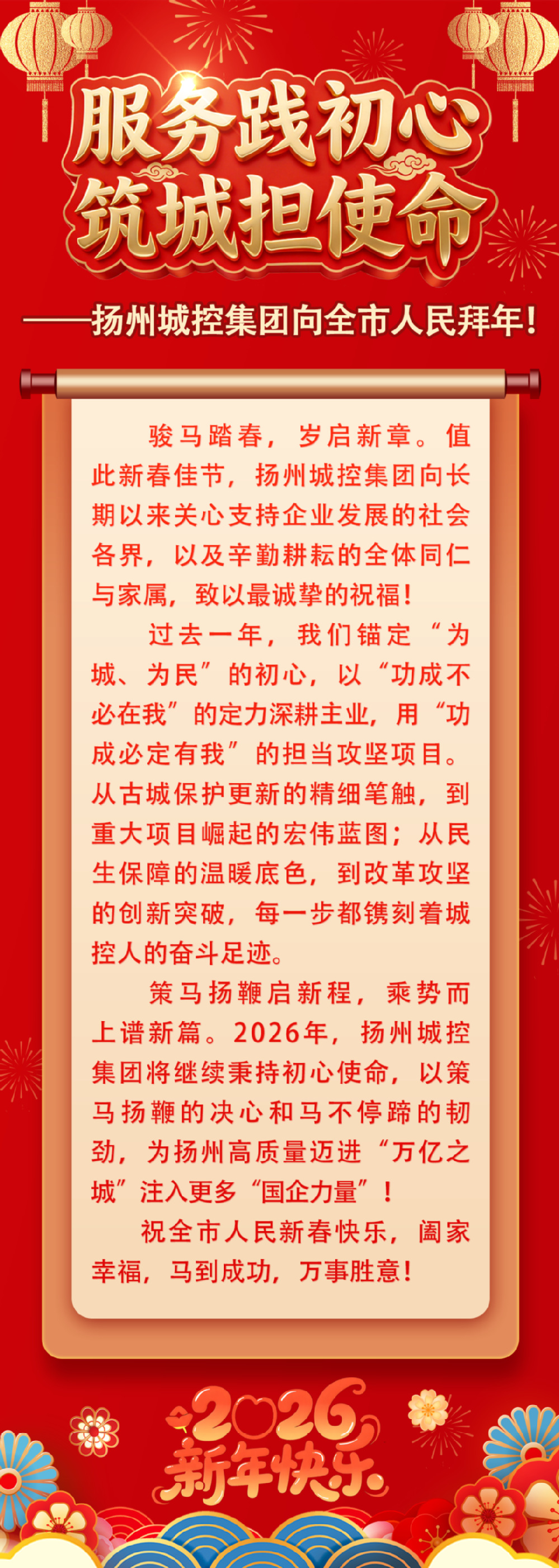 服務(wù)踐初心,筑城擔(dān)使命——揚州城控集團向全市人民拜年!