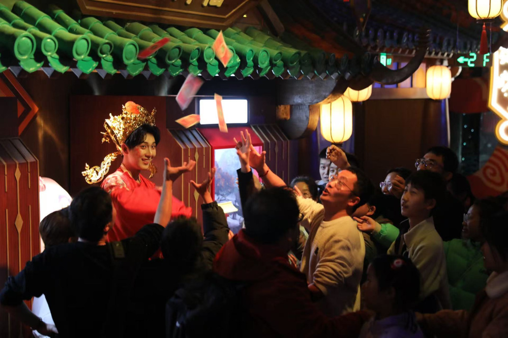 在這里,“沉浸式入戲”的獨(dú)特玩法讓不同年齡段的游客各得其樂(lè)。從《蓮花樓》的江湖快意到《狂飆》的京海煙火,從《唐朝詭事錄》的詭譎奇趣到《大話西游》的經(jīng)典情懷,無(wú)論老少都在此找到專屬快樂(lè)?,F(xiàn)場(chǎng)既有闔家團(tuán)圓的溫馨時(shí)刻,也有情侶打卡的浪漫身影,就連90歲高齡的長(zhǎng)者也慕名而來(lái),親身感受科技與影視碰撞的獨(dú)特魅力。