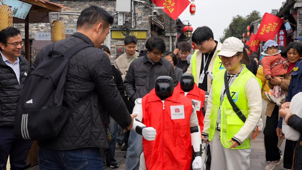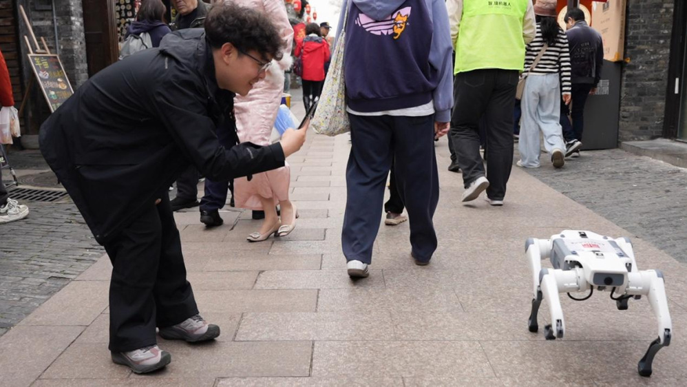 除了趣味表演,兩款機(jī)器人還承擔(dān)著智能引導(dǎo)職責(zé)。機(jī)器狗模擬動(dòng)態(tài)巡邏姿態(tài),人形機(jī)器人則緩緩行走其間,為游客提供全方位的貼心服務(wù)。二者相輔相成,既讓游客感受到科技帶來(lái)的便捷與樂(lè)趣,也讓非遺文化、古街底蘊(yùn)通過(guò)智能互動(dòng),更生動(dòng)、更高效地傳遞給每一位游客。