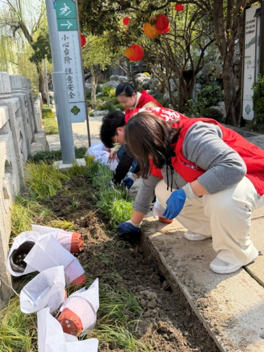 活動(dòng)現(xiàn)場(chǎng),志愿服務(wù)隊(duì)牽頭,街區(qū)運(yùn)營(yíng)團(tuán)隊(duì)、物業(yè)工作人員分工協(xié)作、配合默契,在街區(qū)沿河步道等區(qū)域修剪雜枝、翻松土壤、清除雜草,針對(duì)部分空置區(qū)域,適量補(bǔ)植花灌木與時(shí)令花卉,大家仔細(xì)做好挖坑、扶苗、培土、澆水等工序,確保“栽一片、活一片、美一片”。此次志愿行動(dòng)也帶動(dòng)了周邊商戶和市民主動(dòng)參與,大家主動(dòng)搭把手、出分力,在點(diǎn)滴行動(dòng)中進(jìn)一步增強(qiáng)了愛(ài)綠、護(hù)綠、共建美麗小秦淮的意識(shí)。